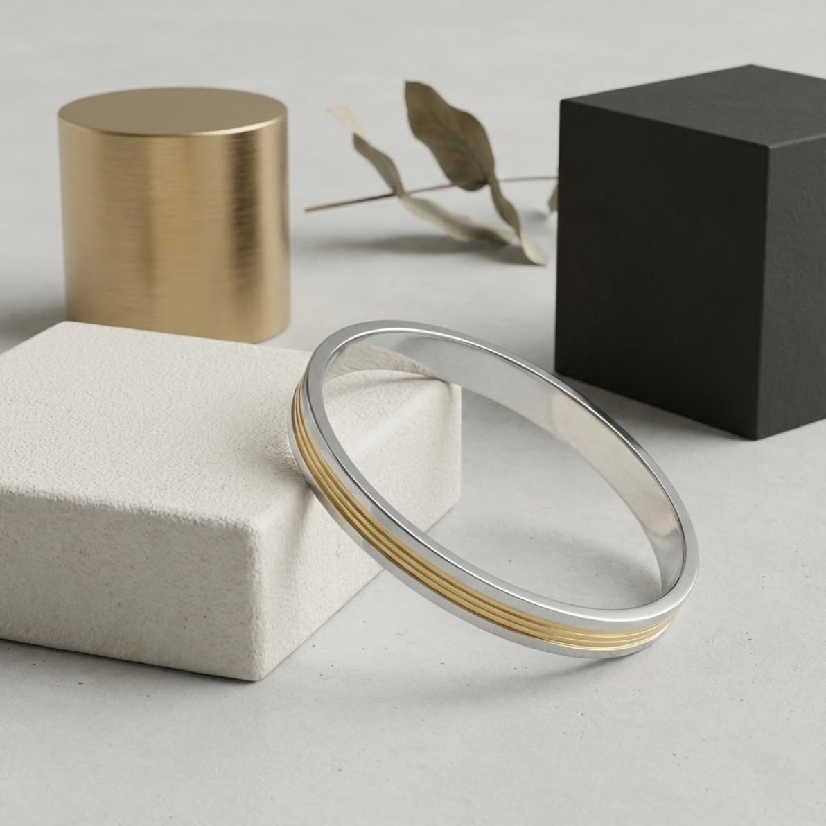Experience timeless style with this premium Men’s Silver Kada, designed in a sleek two-tone gold & silver pattern. Crafted for comfort and durability, it’s perfect for daily wear, traditional functions, and modern fashion. A must-have accessory for today’s gentleman.